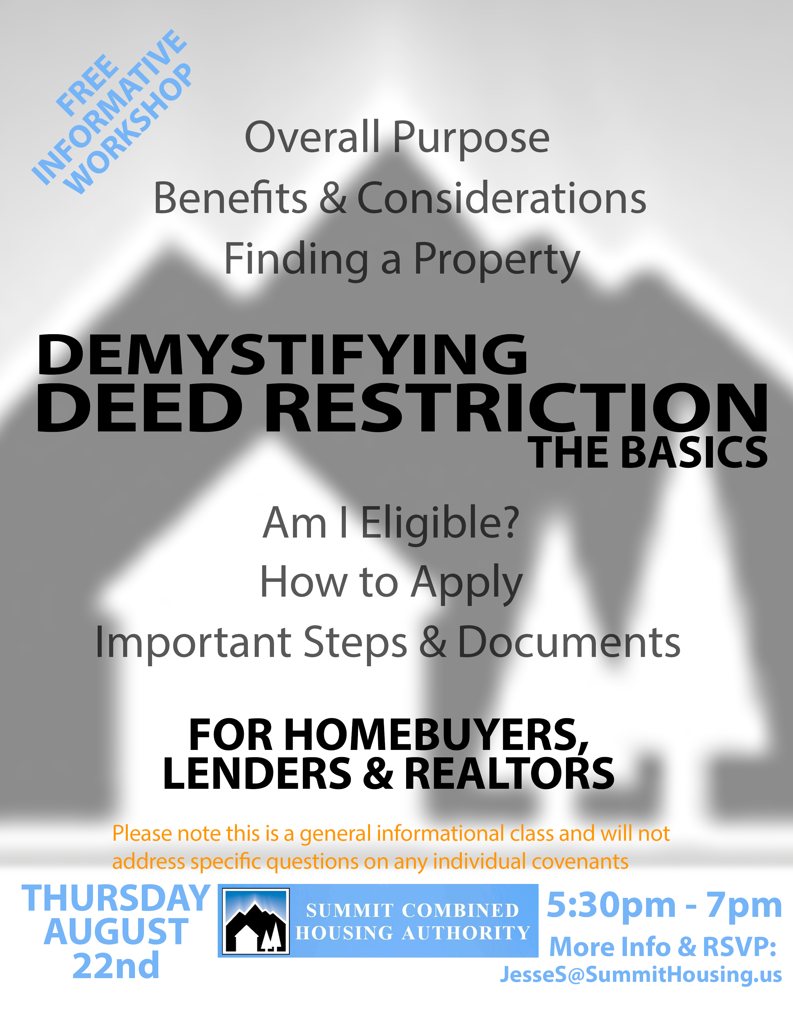 For assistance in obtaining Summit Combined Housing Authority materials in other formats, or for questions regarding special accommodations or accessibility, please call (970) 668-4172.